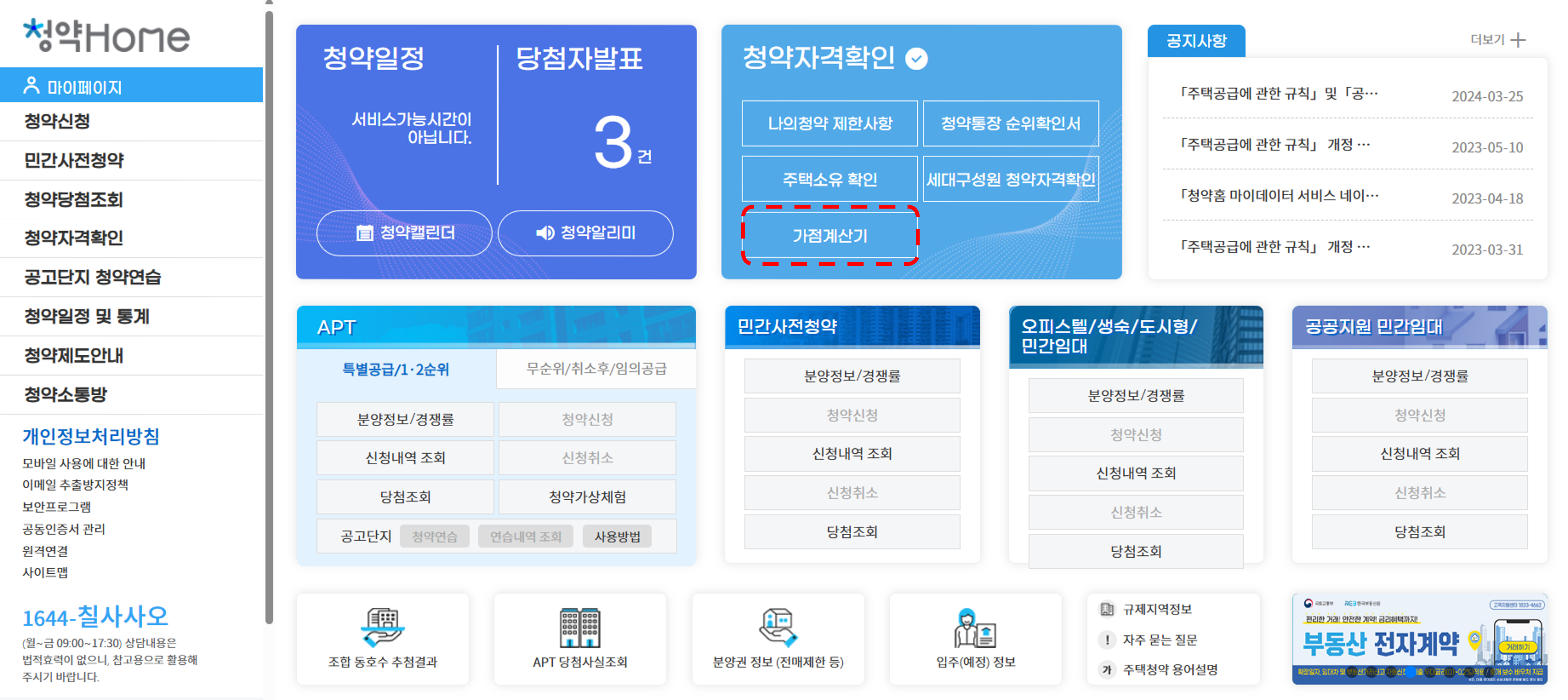 - 청약자격확인 - 가점계산기 클릭